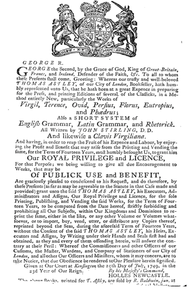 The work was originally published solely by R. Baldwin, who based on a search for works attributed to their distribution on both the ECCO and English Short Title Catalogue (ESTC) databases, appears to have amassed a bibliography of stories that concern themselves with religion and its intersection with topics such as human morality and virtuousness. Some excerpted works that surfaced during this search through their wider publication history included Bellamy D. ‘s The Christian Schoolmaster, which documented a series of accounts for the lives and activities of apostles and evangelists. John Stirling similarly wrote Cursus theologicus, a study of theology that attempted to condense the principles of religion as both a faith, and how its ideology is practically applied. A particular work from R. Baldwin that caught my eye was Phædrus’s Fables, a series of life lessons specifically for use in schools, implying they were primarily targeted towards, and intended to provide a form of moral education for children and teenagers, that would thereby inform classroom and life conduct. In June 1750, R. Baldwin also re-published Richard Barton’s Analogy of Divine Wisdom, an eight-part book exploring the namesake subject in a variety of material, moral, civil and spiritual systems, as well as the nature of morality itself and how to use reason in a Christian context.